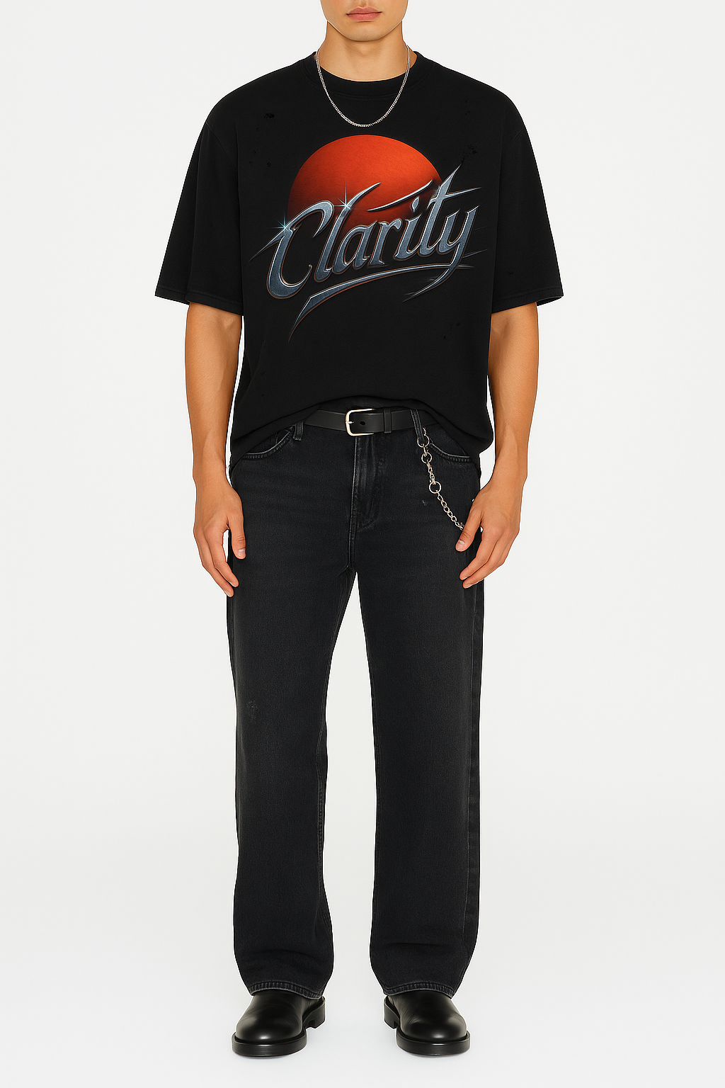 Step into effortless style with the Clarity Vision Tee in White/Black. Featuring a bold red sun graphic behind the signature Clarity script, this shirt blends modern streetwear with a clean, minimal base. Designed with a relaxed fit and premium cotton construction, it’s the perfect everyday piece for layering or rocking solo. Pair it with distressed denim or joggers for a crisp street look.